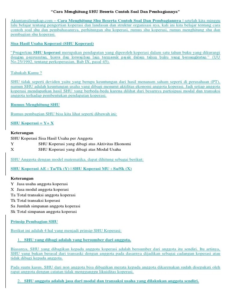Contoh pembagian sisa hasil usaha (shu) anggota koperasi. Pada koperasi manunggal karya kesulitan dalam perhitungan sisa hasil usaha dan penyimpanan data anggota dapat dikatakan masih kurang efisien dan efektif, karena . Cara menghitung sisa hasil usaha koperasi…. Ksp berkat cabang palopo merupakan koperasi yang bergerak dalam jasa simpan pinjam. Shu merupakan salah satu bahasan mata pelajaran ekonomi sma.