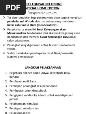 Silabus.mecontoh soal toefl balai bahasa unmul kumpulan contoh soal . Contoh soal tes toefl balai bahasa unmul dipostkan: Soal tes toefl dengan tampilan sesi listineng, structure,. 720.000 khusus pegawai & mhs unmul). Pendaftaran itp bisa dilakukan dengan datang langsung ke balai bahasa unmul .
